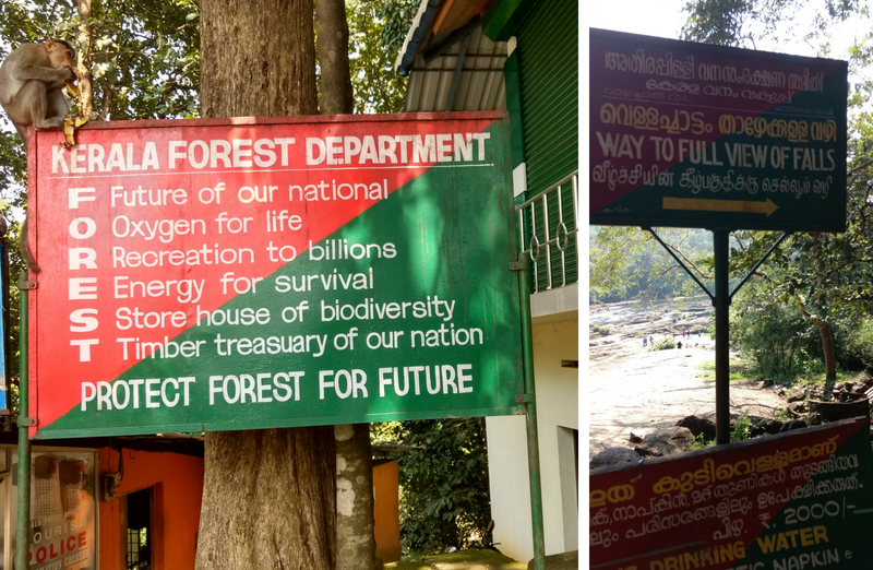 The Chalakudy River was flowing along our right side with mighty waterfalls passing from the huge rocks through a deep valley cut through the rock. The Athirapally Waterfalls is the largest waterfalls in the State of Kerala and so a hot spot for many travelers and movie shootings. There were many tea shops and food stalls all along the roadside and near the entrance to the waterfalls. The entry fees of the falls are Rs. 15.0 per person for adults,. The entrance is huge and artistic and the walkway to the falls of 15-20 minutes is breathtaking, you will find many monkeys. The forest is remarkably green and stunning, we walked the forest trail to the falls, and it was just incredible, liked the way how they preserved it. We spent some quality nearby falls, clicked a few pics and came back.