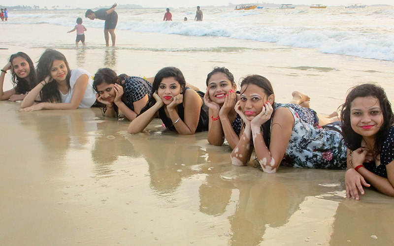 Next day was packed with a boat ride to St. Mary’s island – a small group of tiny islands. You can reach this island by paying around Rs.400/- by private ferry OR Rs.250/- by big Govt. Ferry from Malpe beach, and it was 20 mins of sailing till you reach the island. The ferry ride was a super pleasure as we rode through the Arabian Sea. As we landed the island, we saw numerous coconut trees, and it’s called Coconut Island. The shore is entirely a bed of broken shell of various colors. The water is so clean and bright. As we walked further, we found a fascinating geological formation in the form of hexagonal pillars of rocks. These bizarre ‘columnar joints’ are noted as one of the National Geological Monuments. It was a sunny and hot day, tired and hungry we retired to our rooms, devoured the food and slept like logs. In the evening we were resting in our rooms and chatting, gossiping because we all met after a long time. We had a blast of fun, dance, music and good food that night.