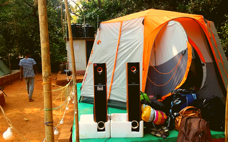 At 5 pm we reached Gokarna. From there we went to Kudle hilltop where we had booked a stay at GreenFeet: Halfway Home. A campsite set under a canopy of green foliage and amidst the chirpings of birds. Tents pitched on a dedicated elevated platform with all the necessary amenities. The tents built around a mango tree which is lit ambiently during the night. They have an in-house veg restaurant where they serve delicious food.